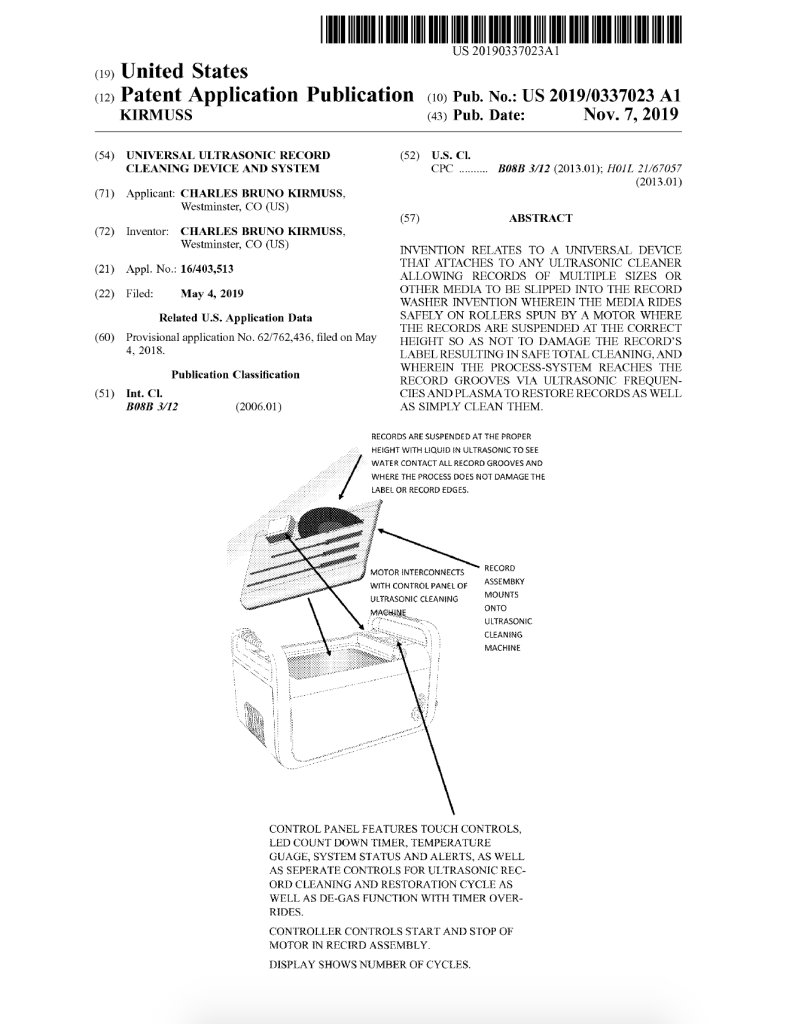 https://patents.google.com/patent/US20190337023A1/en?q=ULTRASONIC&inventor=KIRMUSS&status=APPLICATION&type=PATENT&oq=status:APPLICATION+type:PATENT+KIRMUSS+ULTRASONIC